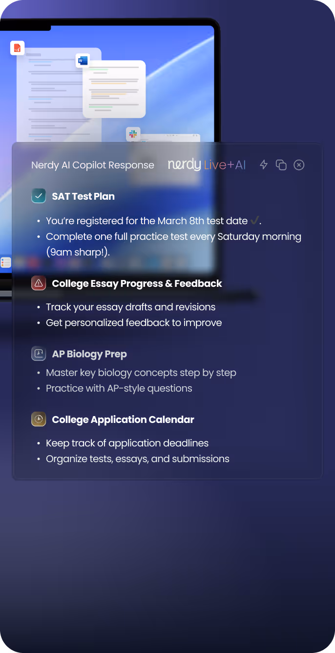 Your AI study sidekick: Nerdy listens, explains, and plans so you keep up, stress-free, in every class.