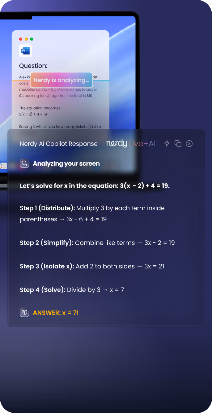 Lecture's too fast. The exam’s too close. Google’s no help. You’re stuck, stressed, and out of time. Nerdy fixes each, in real-time.